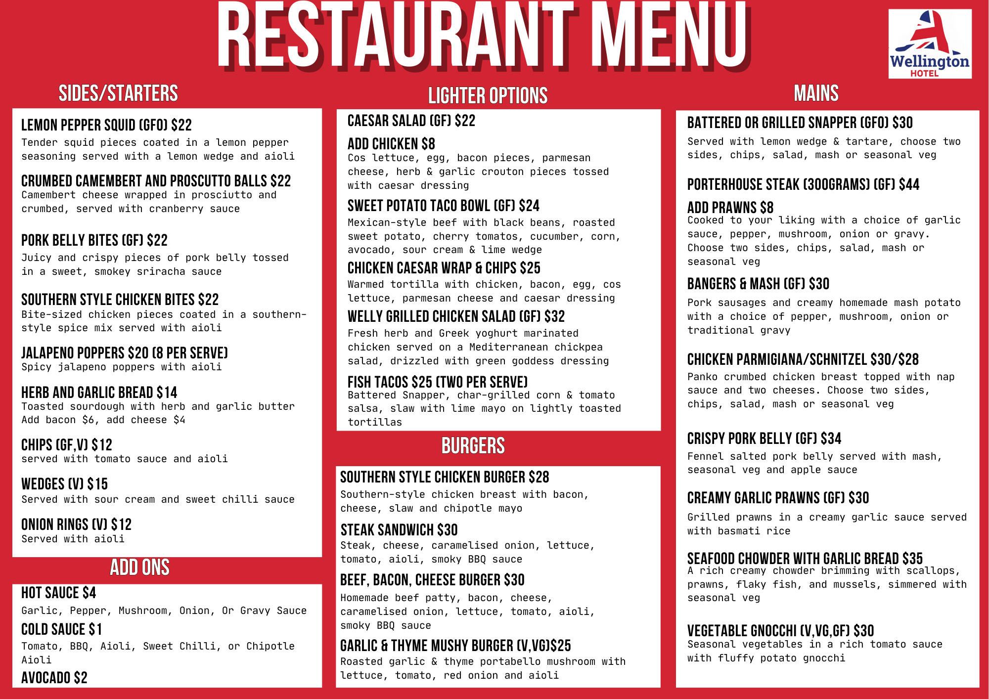In the mood for some good pub grub? The Wellington Hotel is the place to be! Open every day for lunch and dinner, we have something for everyone.